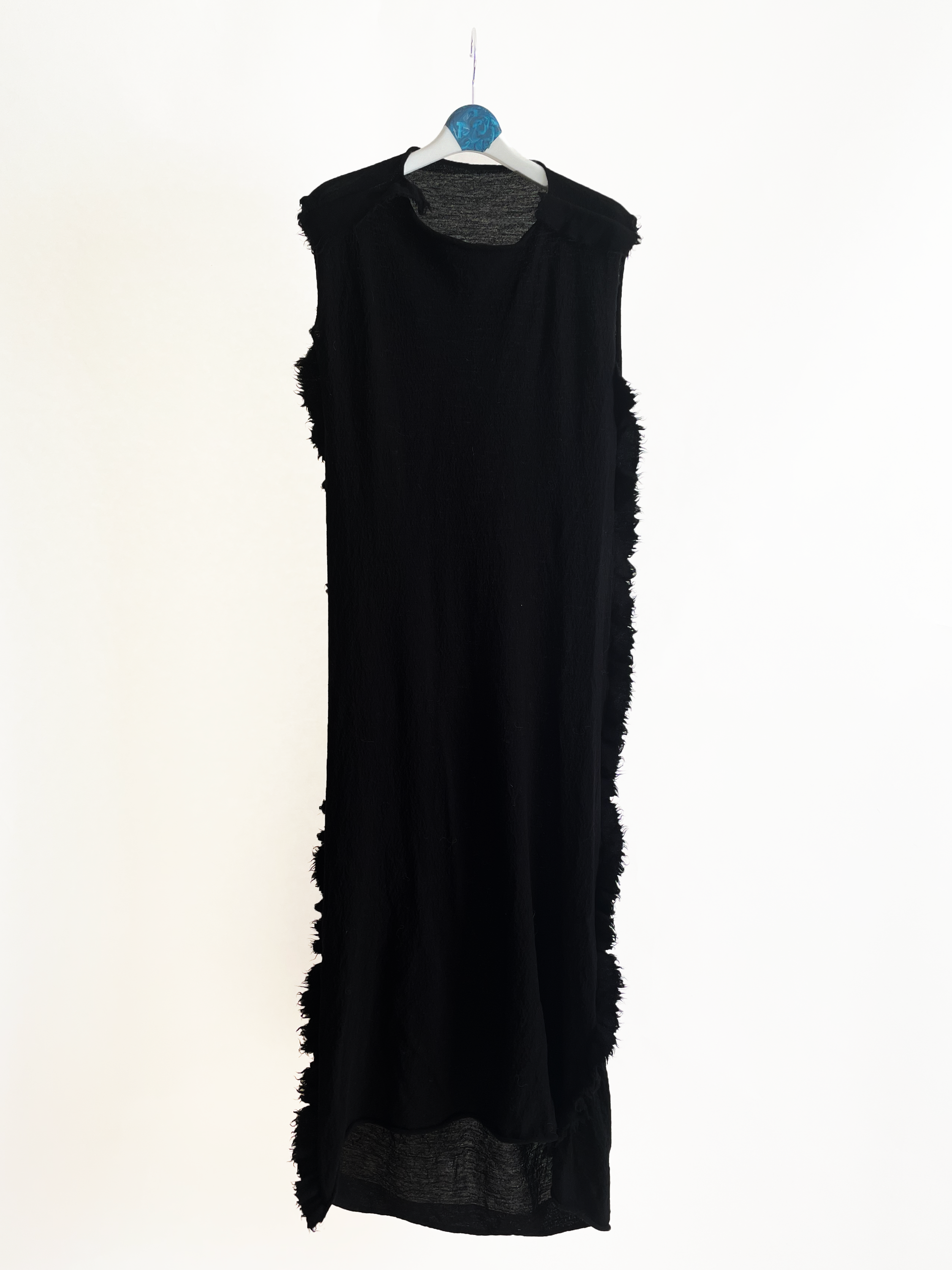 ダブルジャガード機で編んだウールジャージ。一枚のニット生地をカットアウトし、ウールの特性を活かした、縮絨加工を施した無縫製のニットワンピース。